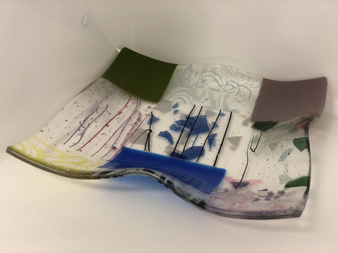 Gorgeous blue stringers on clear. Try layering this over opaque, transparent or streaky glass! Also great to use as an accent overlay!